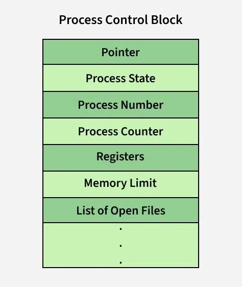 - 프로세스 카운터(PC) : 프로세스에 대해 실행될 다음 명령어 주소에 대한 포인터